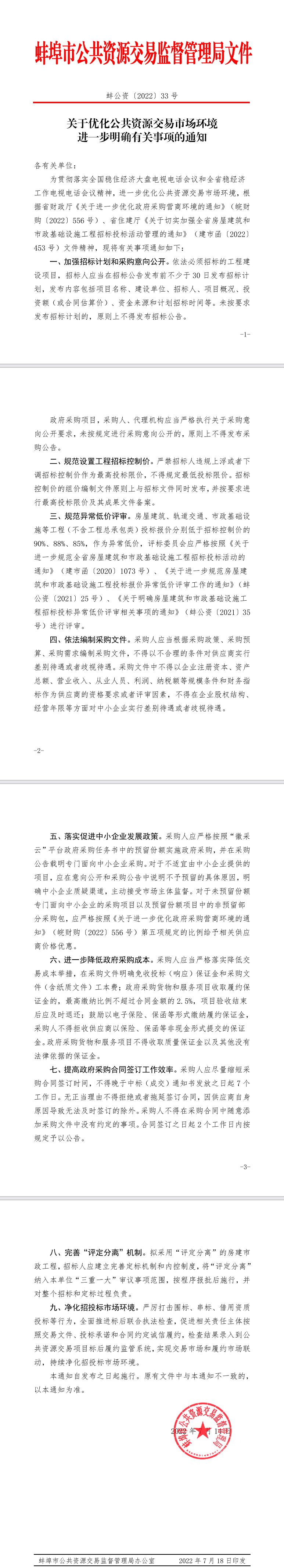 蚌公资〔2022〕33号 关于优化公共资源交易市场环境进一步明确有关事项的通知
