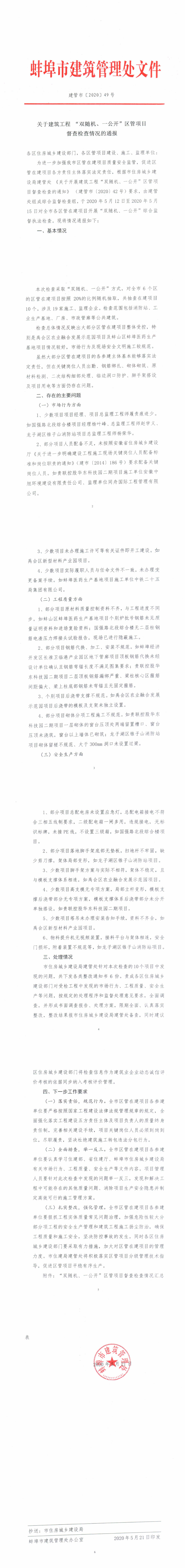 关于建筑工程“双随机、一公开”区管项目督查检查情况的通报