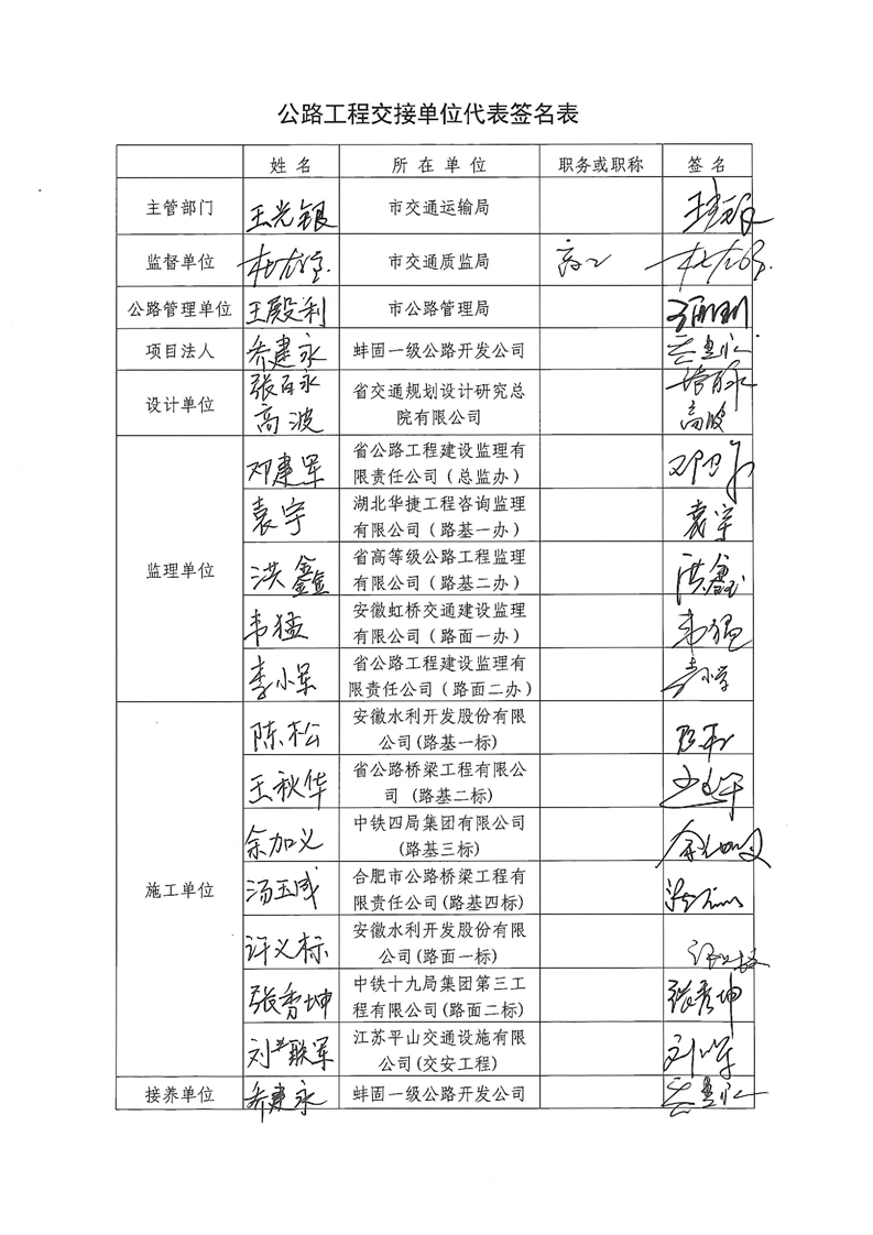重大项目蚌埠至固镇公路改造工程竣工验收鉴书 |