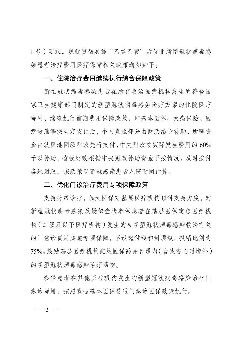 转发关于贯彻实施“乙类乙管”后优化新型冠状病毒感染患者治疗费用医疗保障相关政策的通知