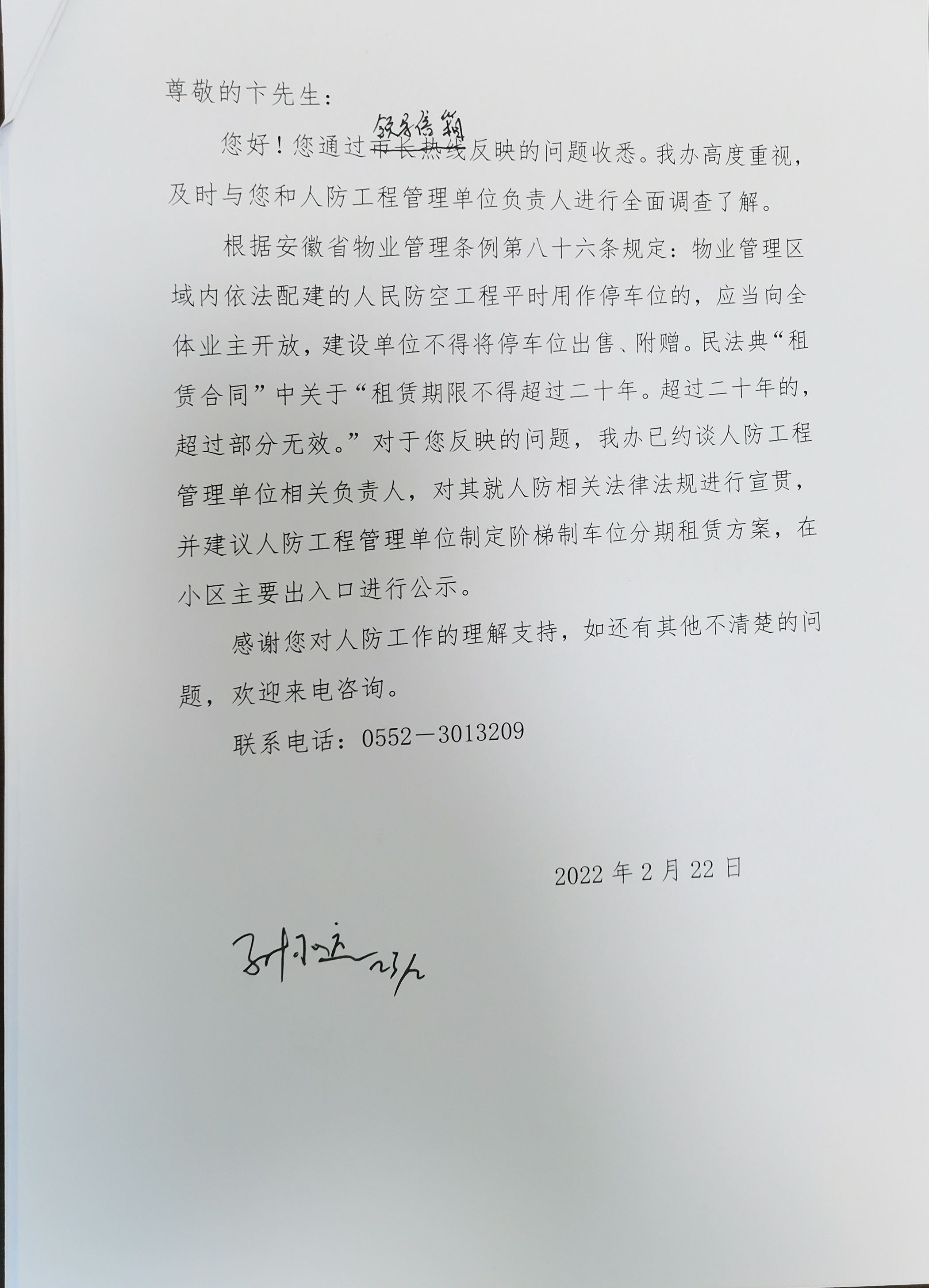 答复意见: 尊敬的卞先生: 您好!您通过领导信箱反映的问题收悉。我办高度重视,及时与您和人防工程管理单位负责人进行全面调查了解。