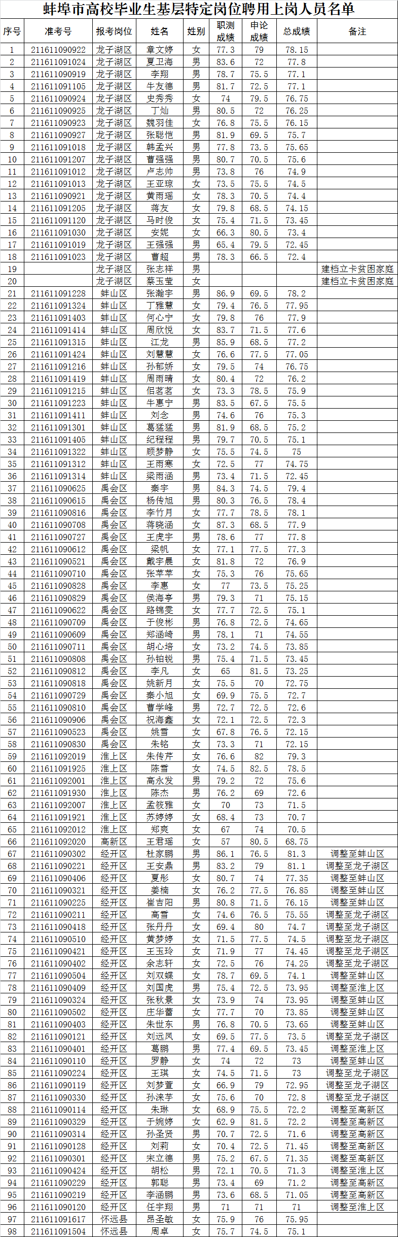 备注:因经开区区划功能调整,全市基层特岗指标数进行重新调整分配,原报考经开区岗位人员分流到其它区。