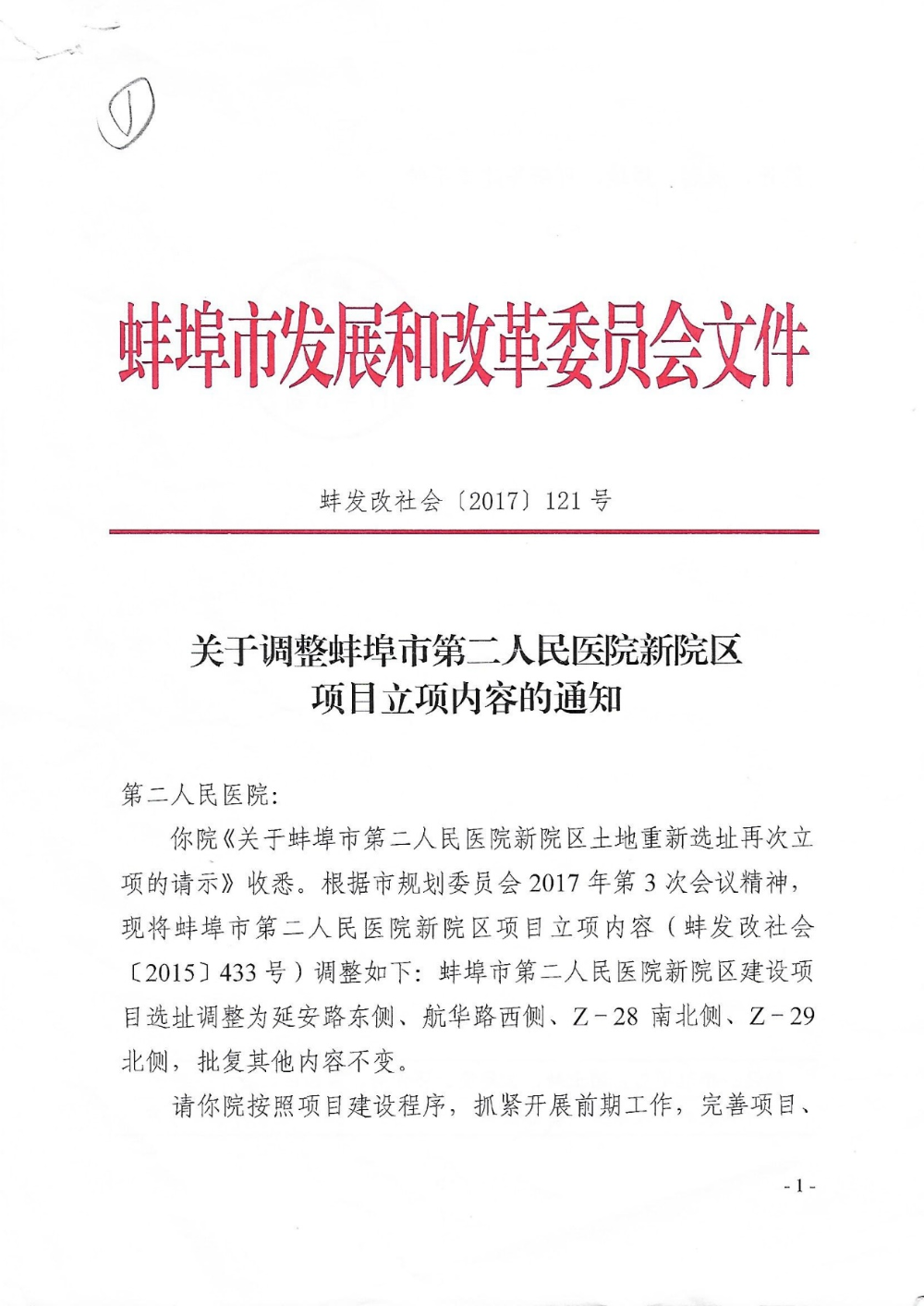 市第二人民医院新院区暨心血管医院项目调整立项内容的通知