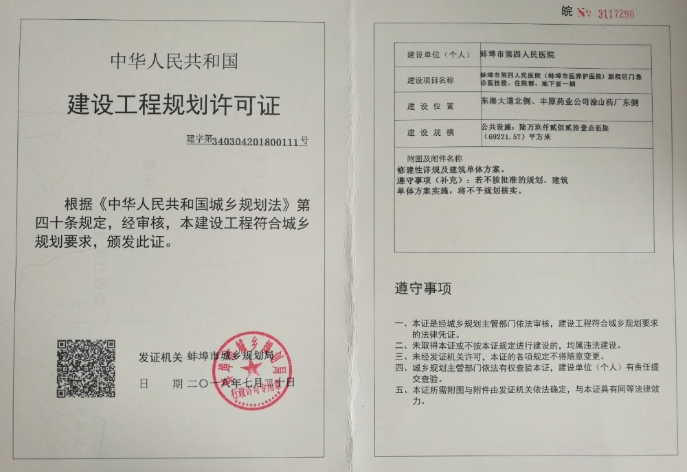 365彩票app下载苹果版_靠谱网站365_beat365官方登录入口第四人民医院(365彩票app下载苹果版_靠谱网站365_beat365官方登录入口医养中心医院)新院区项目建设工程规划许可证