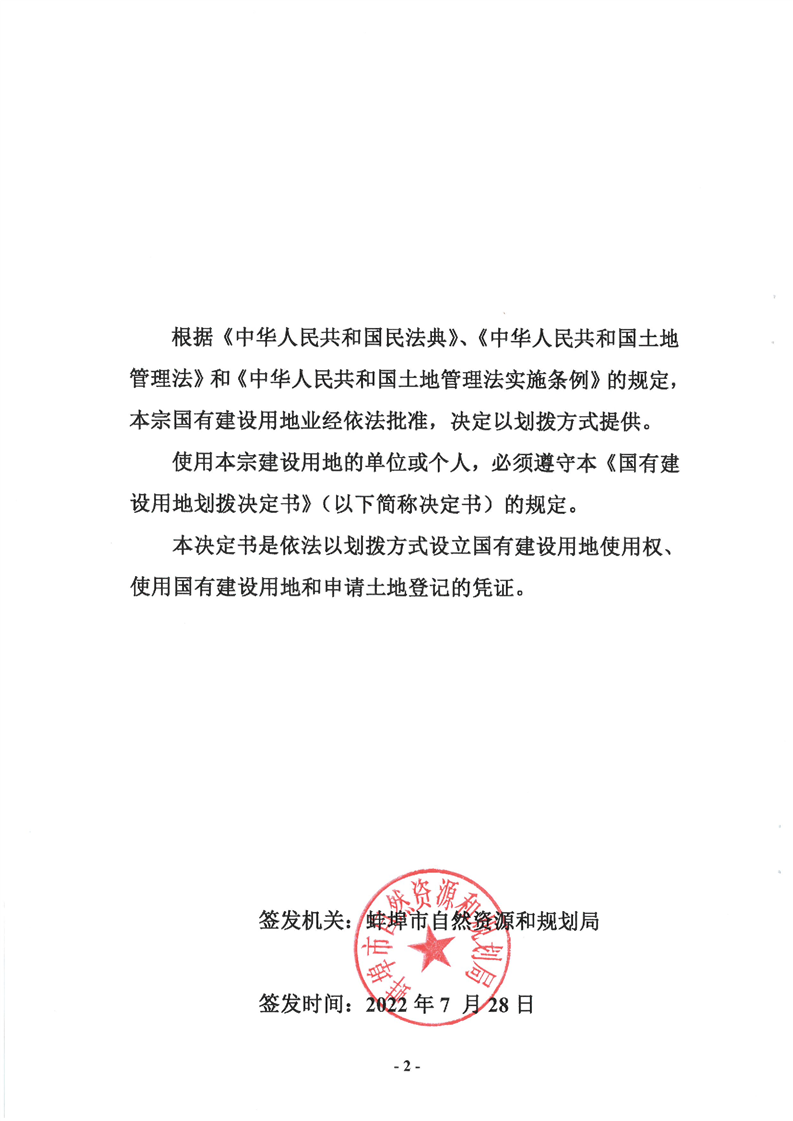 蚌土划供审批字(2022)43号古杏路划拨决定书