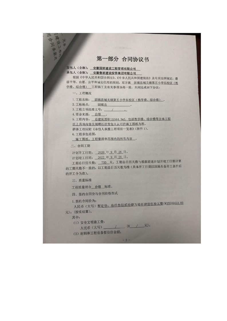 【施工信息】固镇县第五小学东校区施工合同