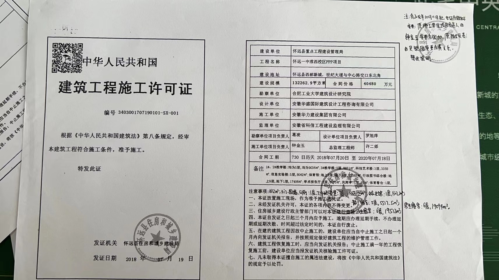 【建筑工程施工许可证】怀远县一中淮西校区PPP项目