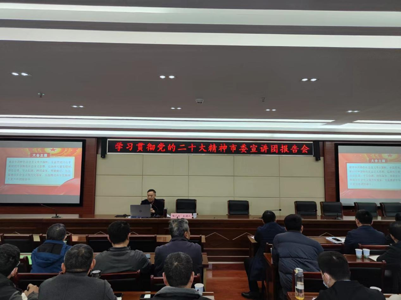 按照市委统一部署,12月3日上午,市委宣讲团来到市发展改革委,举行学习贯彻党的二十大精神宣讲报告会,市委宣讲团成员、市发展改革委党组书记、主任陶广生作宣讲报告。