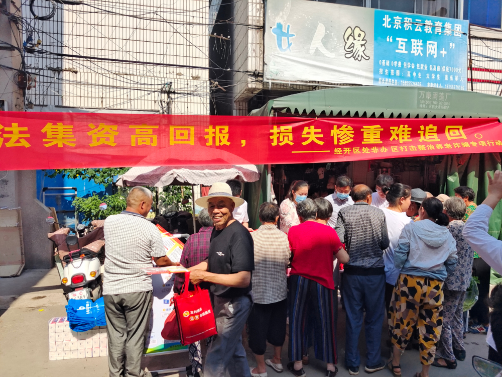 市民宣传防范非法集资、养老诈骗等方面的相关知识。提高群众特别是老年人对非法集资和养老诈骗的辨识能力,远离非法集资,降低非法集资发生风险。有效提高了群众对非法集资危害性的认识,增强了群众的风险防范意识,对维护经济金融秩序稳定社会和谐起到了积极作用。
