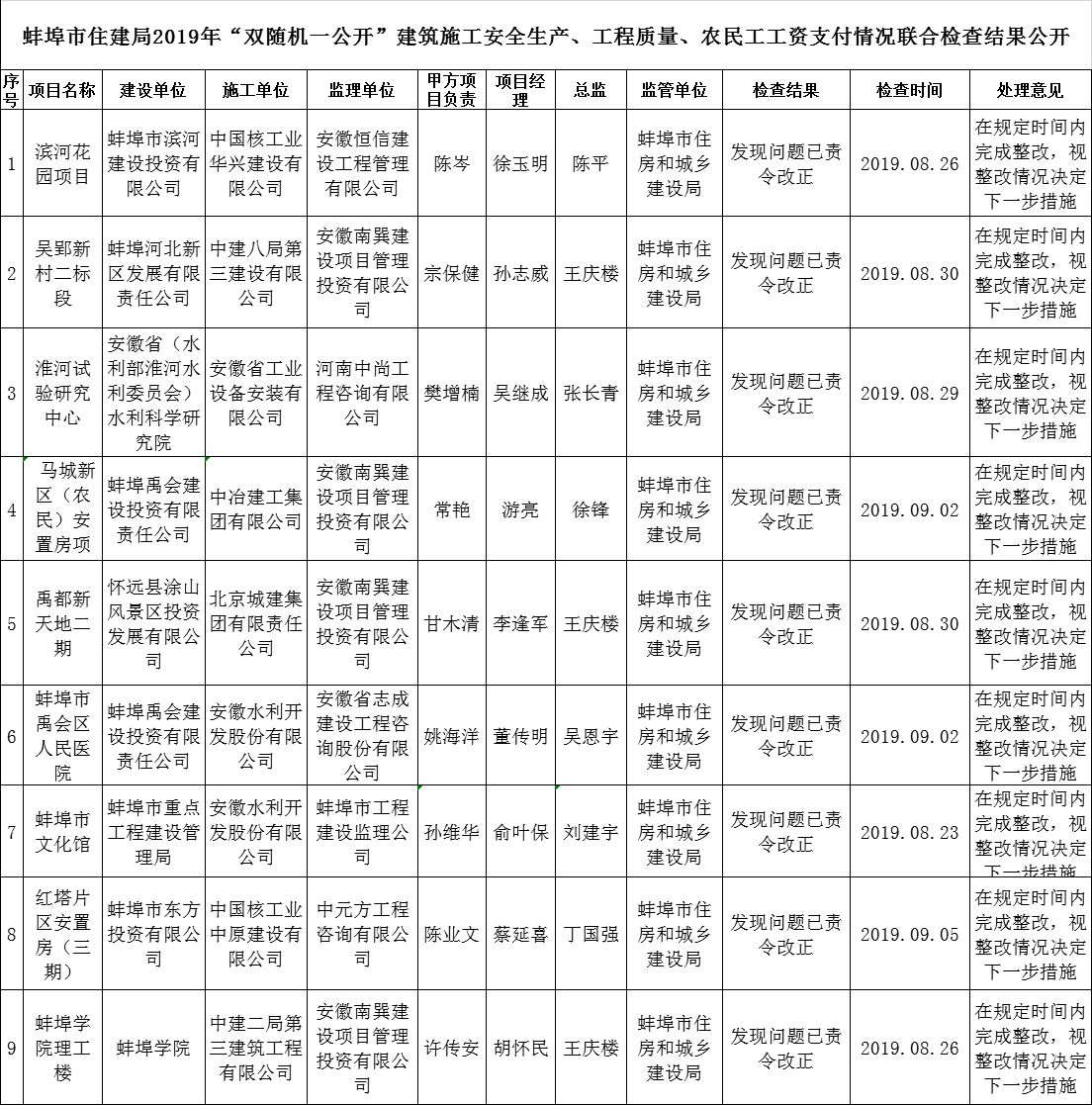 [住建]365彩票app下载苹果版_靠谱网站365_beat365官方登录入口住建局2019年“双随机一公开”建筑施工安全生产、工程质量、农民工工资支付情况联合检查结果公开