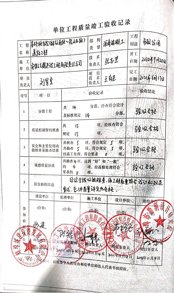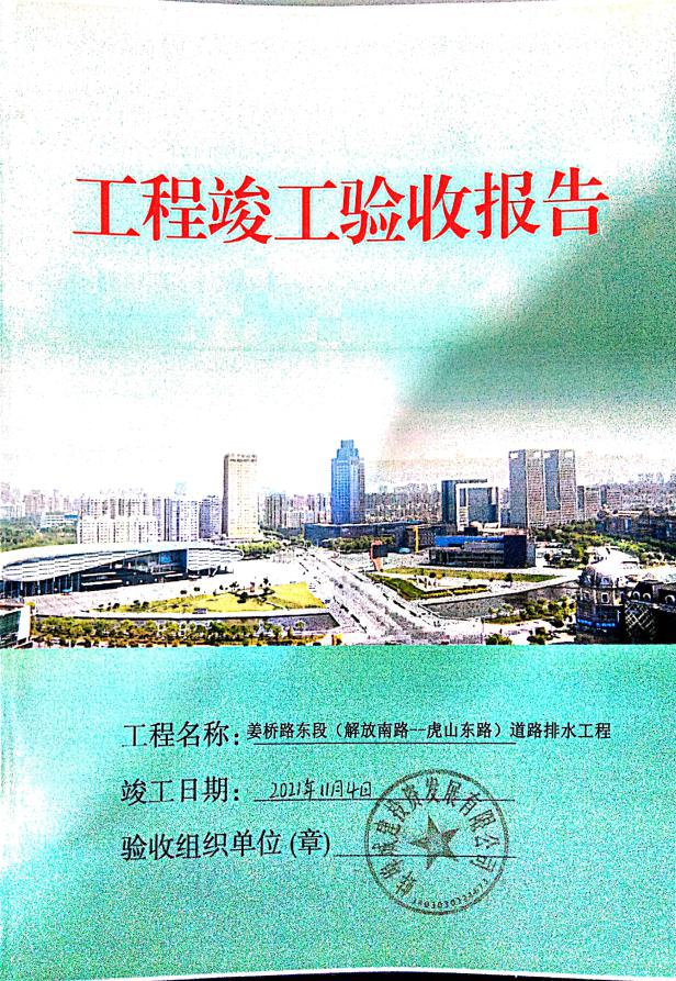姜桥路东段(解放南路-虎山东路)道路排水工程于2021年11月4日竣工验收。
