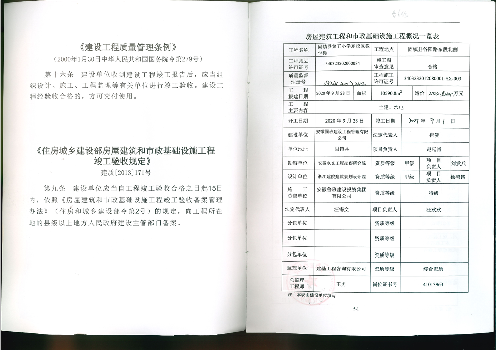 【竣工信息】新五小东校区教学楼竣工验收报告