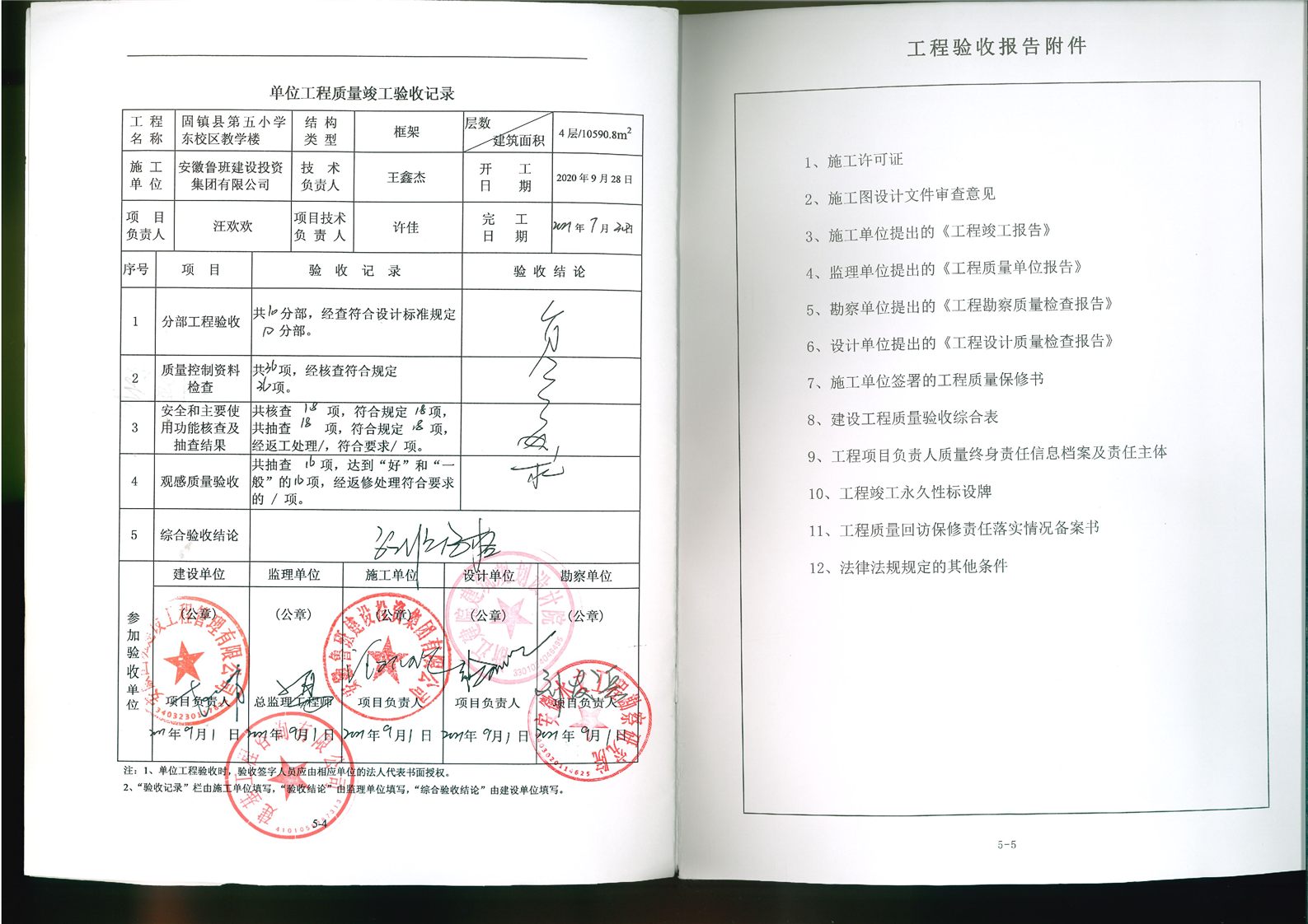 【竣工信息】新五小东校区教学楼竣工验收报告 |