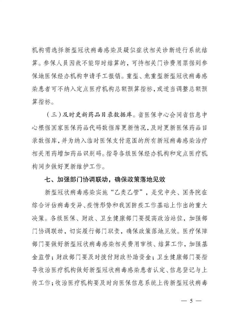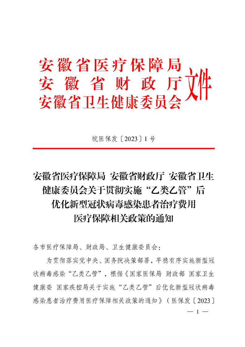 转发关于贯彻实施“乙类乙管”后优化新型冠状病毒感染患者治疗费用医疗保障相关政策的通知