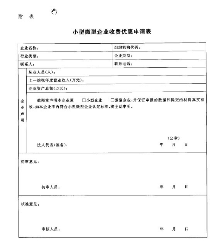1《小型微型企业收费优惠申请表》(见附件2附表);
