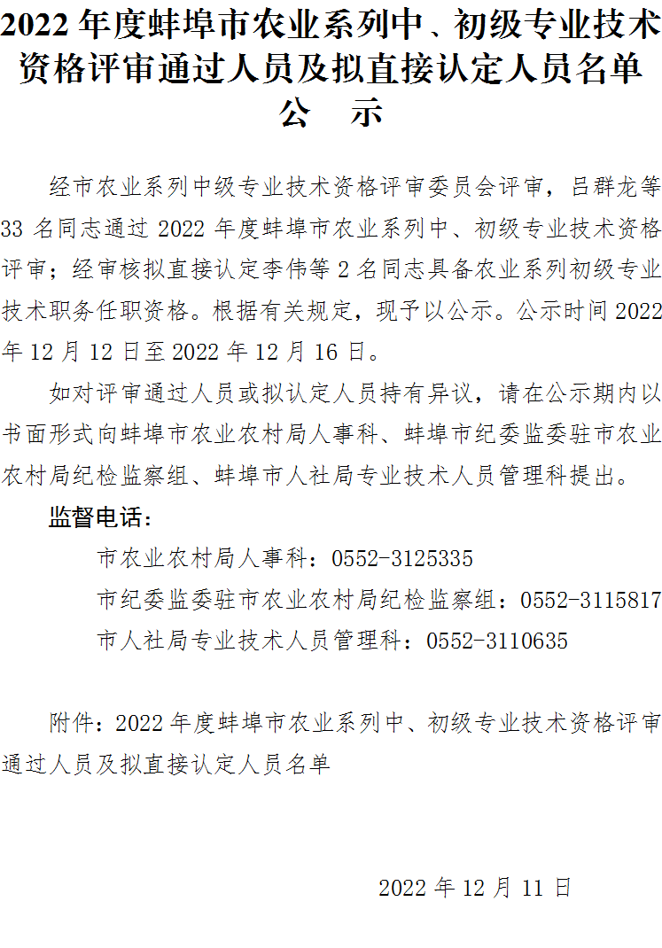 2022年度365彩票app下载苹果版_靠谱网站365_beat365官方登录入口农业系列中、初级专业技术资格评审通过人员及拟直接认定人员名单公示
