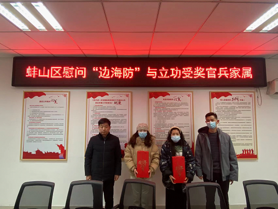 市退役军人事务局高度重视节日期间拥军优属工作,春节前夕组织各级退役军人事务部门和省爱国拥军促进会蚌埠会员单位集中走访慰问了130户边海防官兵家庭。市双拥工作办公室制作了新年明信片,在全市征集了600余份手工慰问贺卡、信件,对驻守边防的子弟兵致以最淳朴的美好祝愿。
