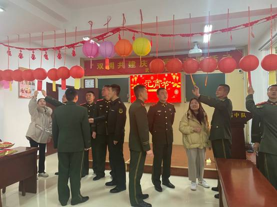 元宵佳节到来之际,为促进军地互动交流,共叙军民鱼水情,2月3日,市光荣院志愿服务队来到武警安徽省总队蚌埠支队怀远中队,与武警部队官兵们共同开展“我们的节日•元宵”主题活动。活动以“节日感党恩 共话新时代”为主题,内容有唱军歌、忆党史、猜灯谜、做花灯、包元宵。