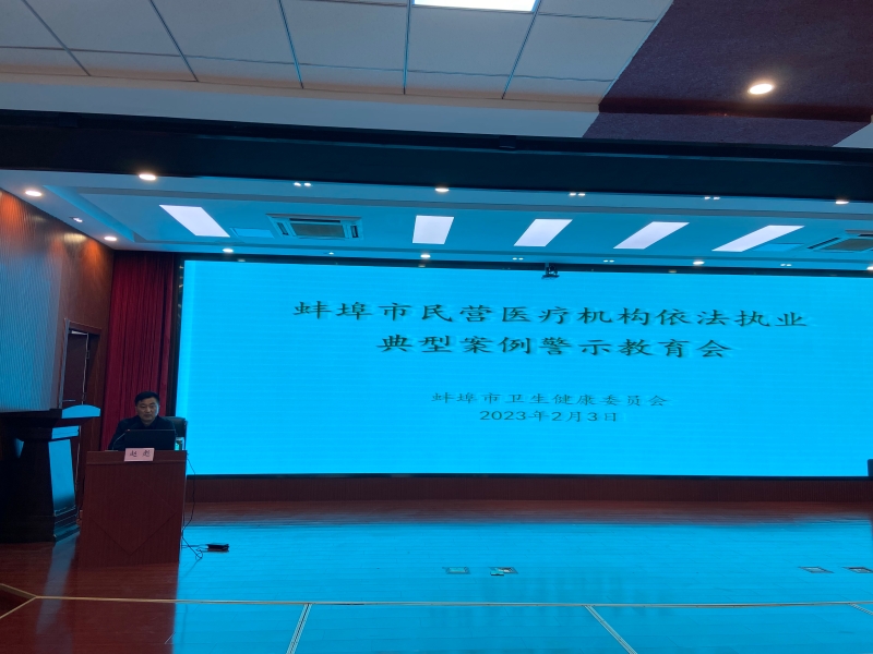 为深入学习贯彻党的二十大精神,规范我市民营医疗机构及医务人员执业行为,维护疫情防控安全稳定大局,提升医疗质量和服务水平,保障人民群众就医安全。2月3日下午,365彩票app下载苹果版_靠谱网站365_beat365官方登录入口卫生健康委召开全市民营医疗机构依法执业典型案例警示教育会,市卫生健康委党委委员、副主任赵彪出席会议并讲话。市卫生健康委四级调研员、法规监督科科长许燕主持会议。市卫生健康综合监督执法支队副支队长陈杰、市卫生健康委法规监督科副科长南虹社及全市一级以上民营医疗机构负责人达80余人参加。