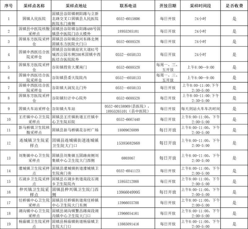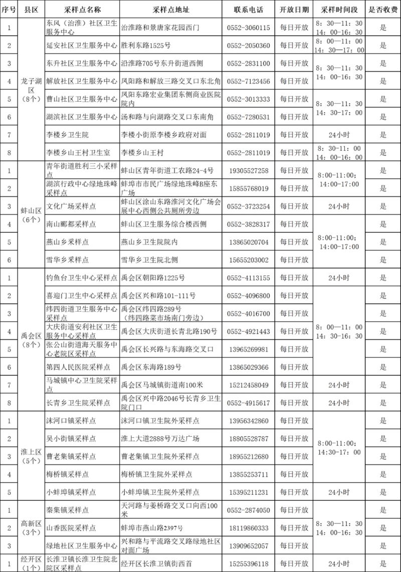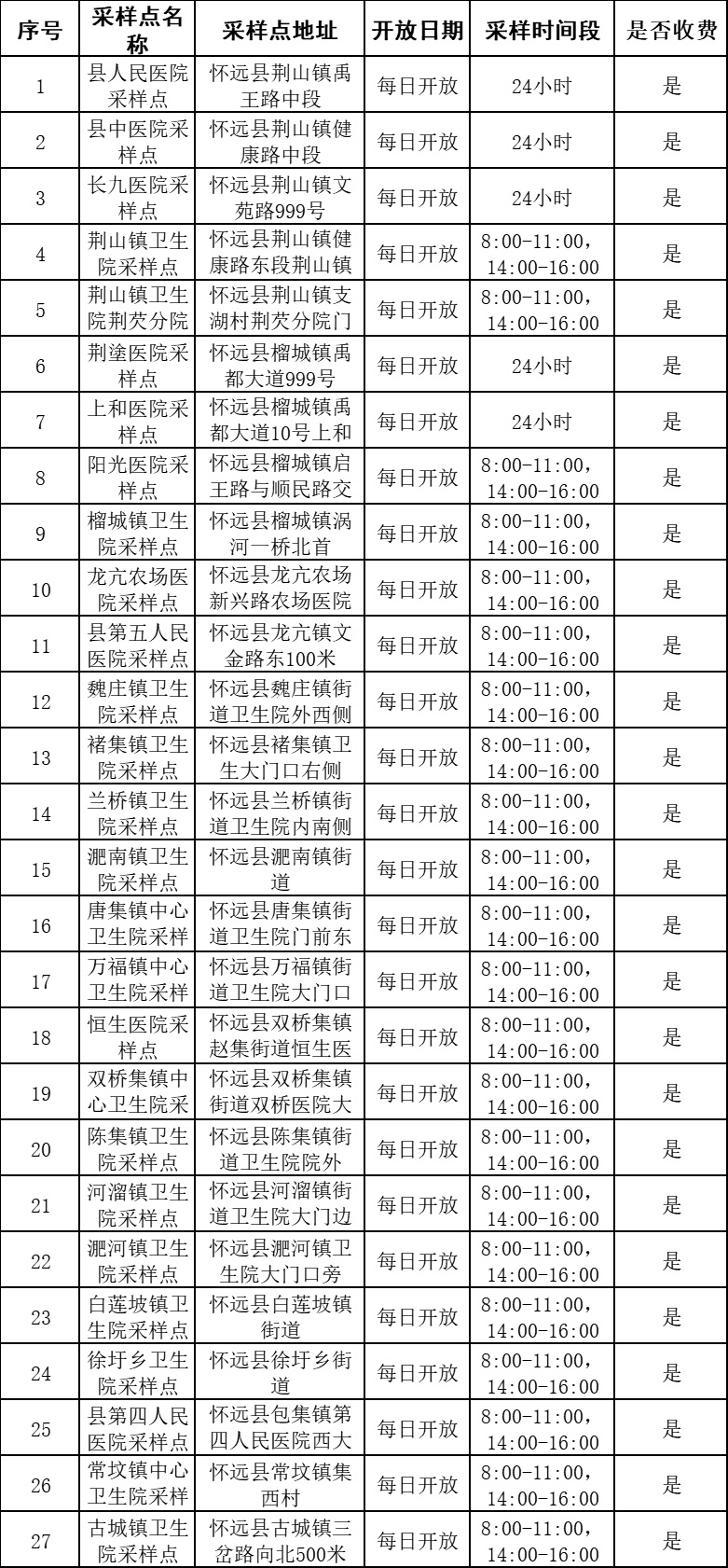 为保障我市人民身体健康,满足群众日常核酸检测采样需求,按照“愿检尽检、便民采样”的原则,我市各县区设置多个便民核酸采样点,具体名单附后。