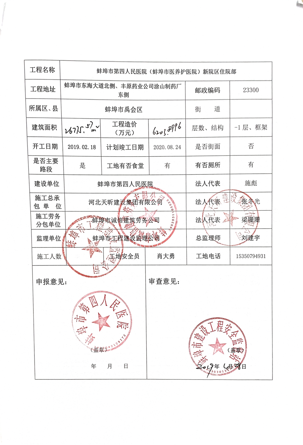 365彩票app下载苹果版_靠谱网站365_beat365官方登录入口第四人民医院(365彩票app下载苹果版_靠谱网站365_beat365官方登录入口医养中心医院)新院区项目安全报监信息