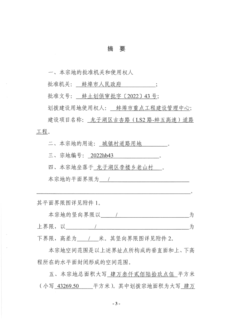 蚌土划供审批字(2022)43号古杏路划拨决定书