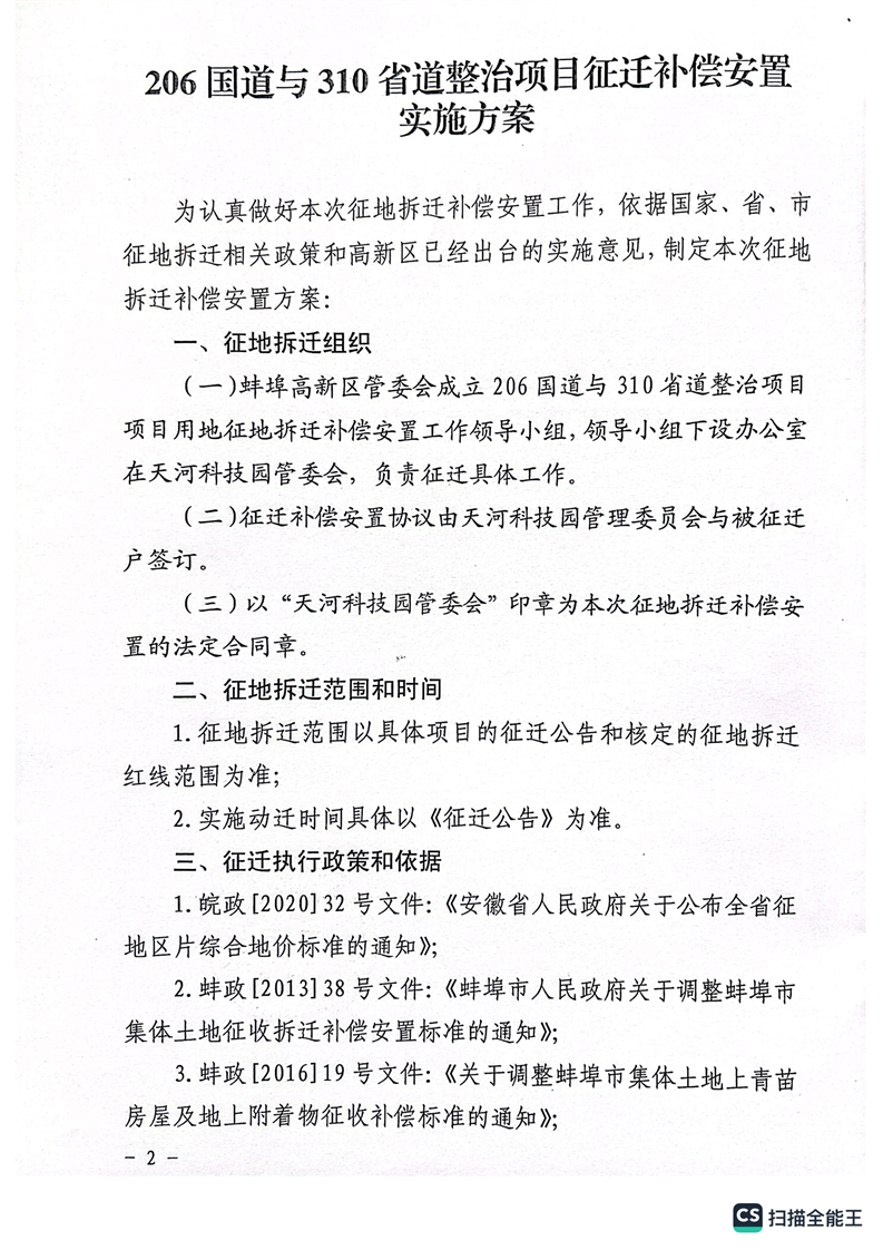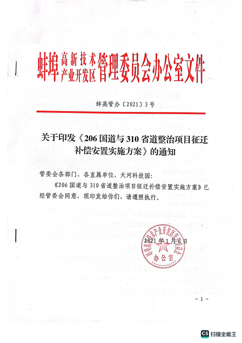 关于印发《206国道与310省道整治项目征迁补偿安置实施方案》的通知